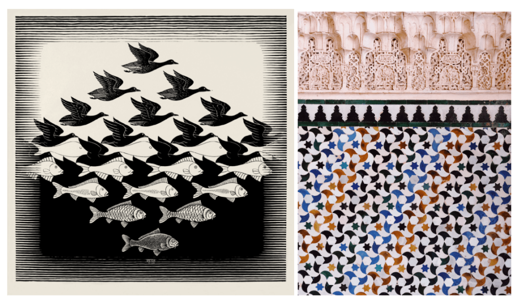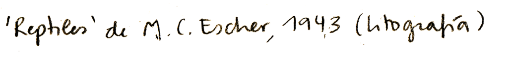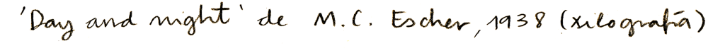 Conocí la obra de M.C Escher, de hecho, gracias a mi padre. En casa teníamos un libro que recogía parte de su obra y ya de muy pequeña me llamaron la atención todos aquellos módulos que tanto eran peces como pájaros, pero en esencia patrones y parajes inquietantes. Aquellas casas sin suelos ni tejados, los seres feos que las habitaban, también manos y criaturas que escapaban del papel y escaleras en las que se inspiró Hogwarts.