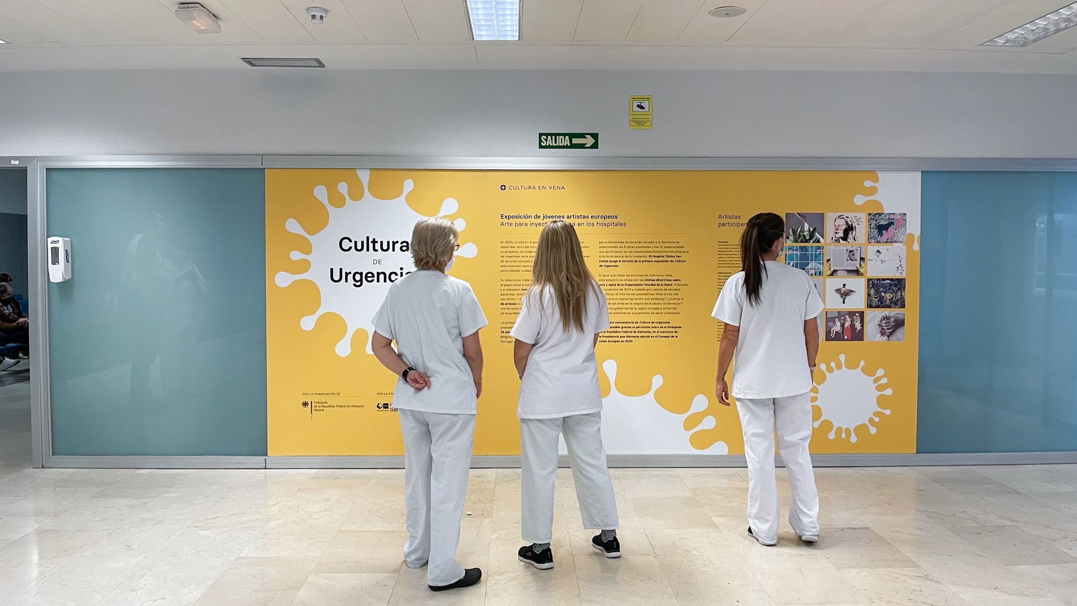 El centro hospitalario madrileño expone una selección de 30 obras del concurso Cultura de Urgencias, creado en plena pandemia por Cultura en Vena con el apoyo de la Embajada de Alemania y la colaboración del Círculo de Bellas Artes de Madrid para contribuir por medio del arte al bienestar de los pacientes, de sus familiares y del personal sanitario.